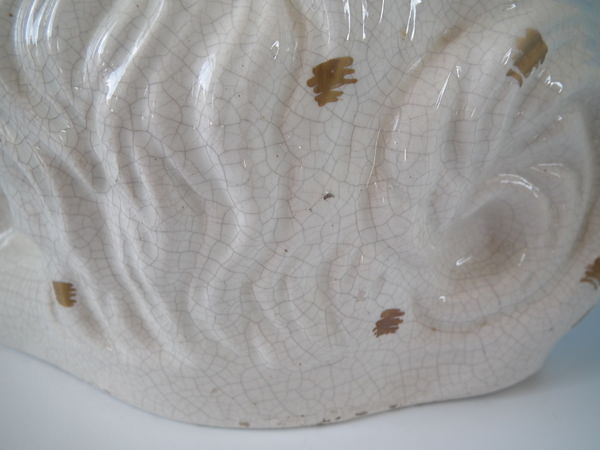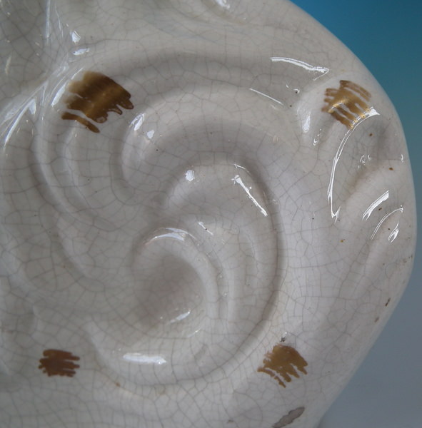 KILN EFFECTS: over glazed shrinkage line to the right hind paw;