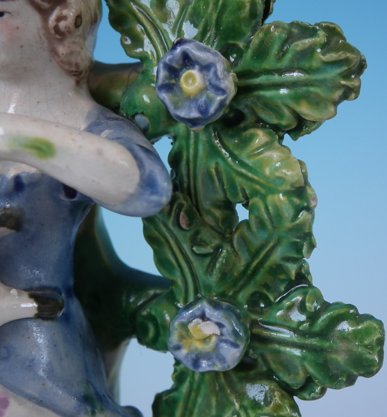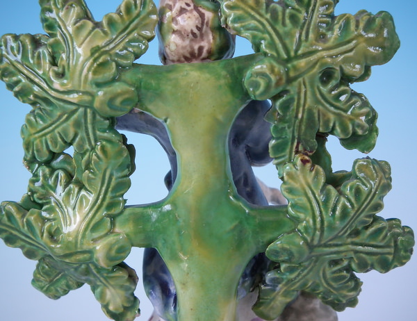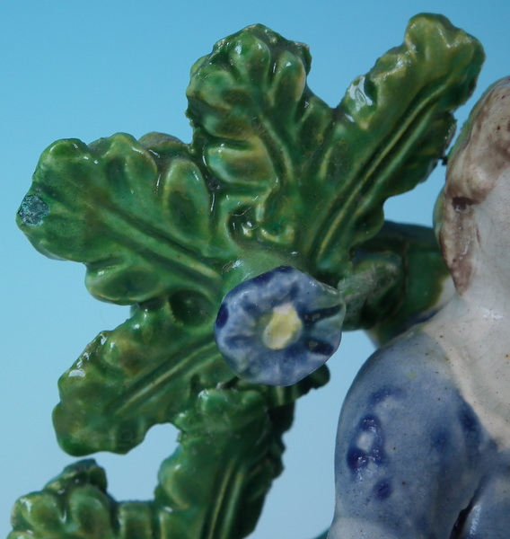 Filled chips to 3 bocage leaf tips. One bocage leaf remodelled. 90% of bocage is original pottery.