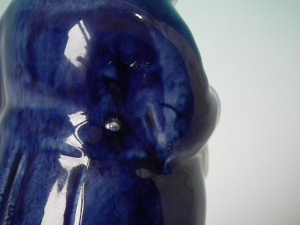 KILN EFFECTS: kiln soot caught in the glaze to his face;