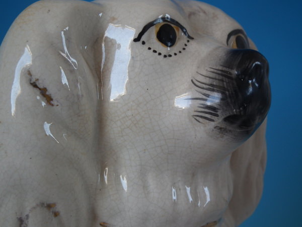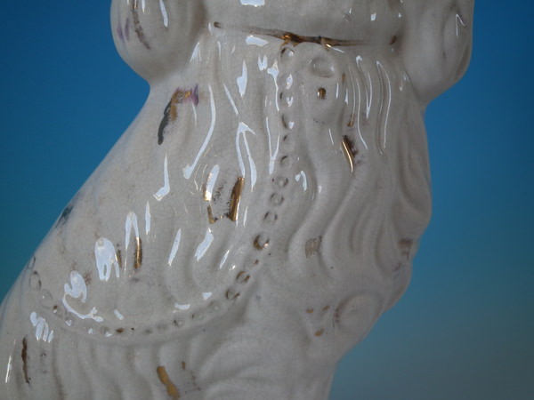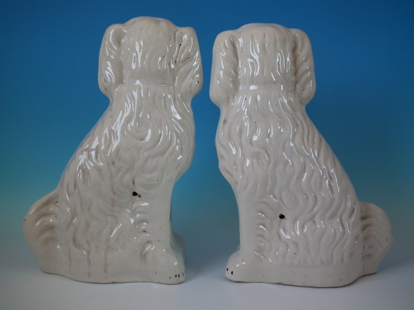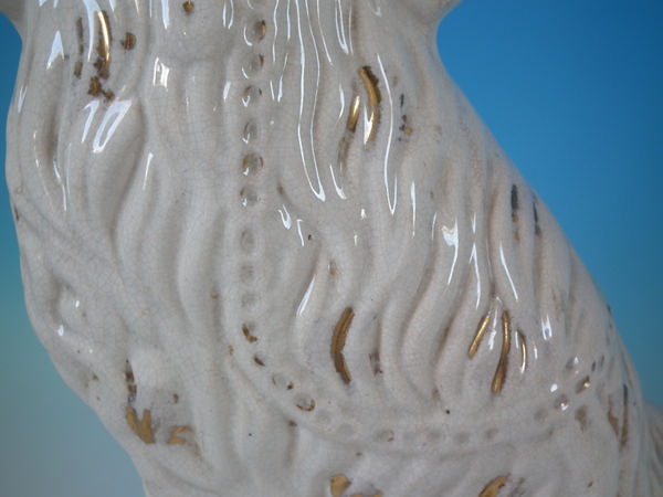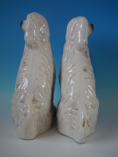 Large Pair Staffordshire white & gilt spaniels