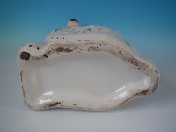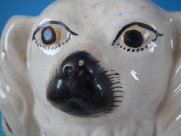 Victorian, circa 1880. Tallest is 14.6ins high, 11ins wide, 4.9ins depth. Pair of Staffordshire figures which feature a spaniel, seated directly on the ground, no base.
