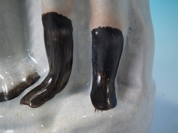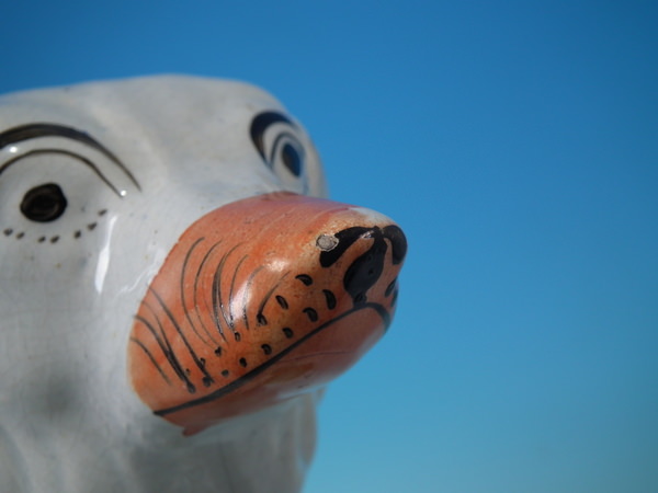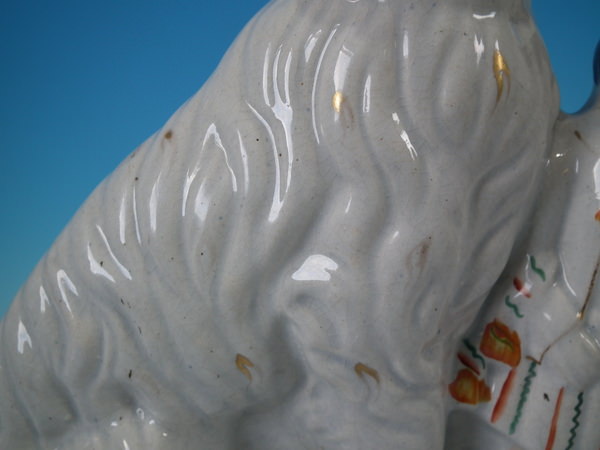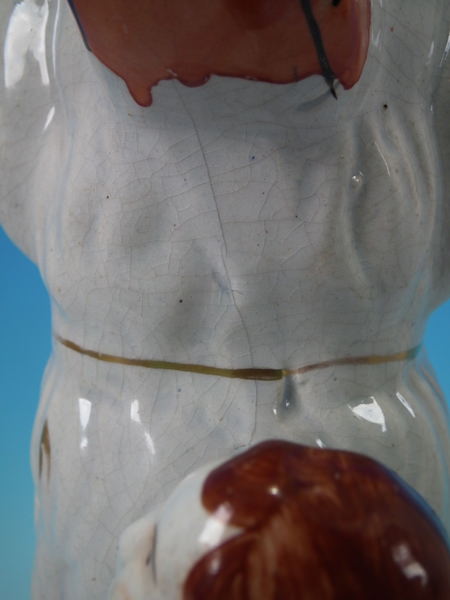 CONDITION: Good. No restoration. Small flakes to dog's nose and boy's hat.