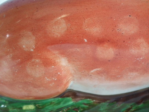 kiln detritus caught in the glaze to the face.