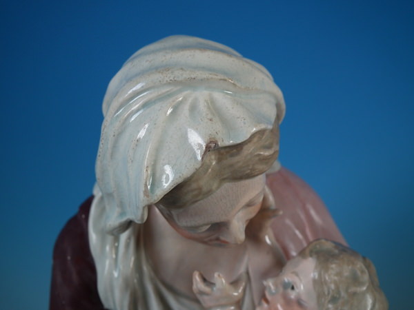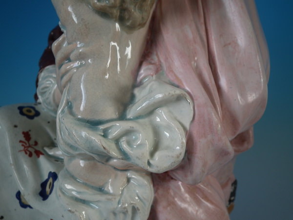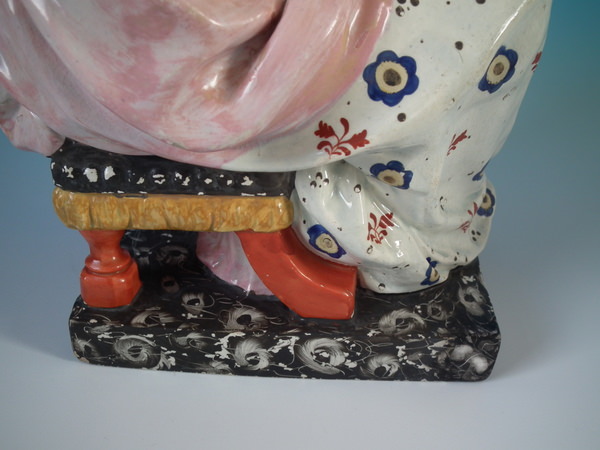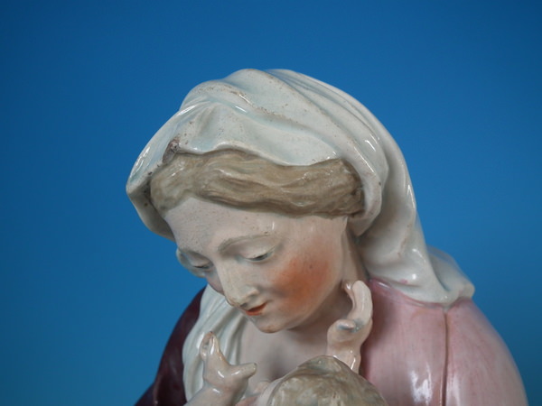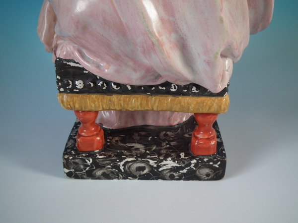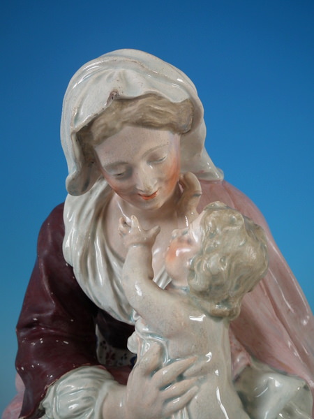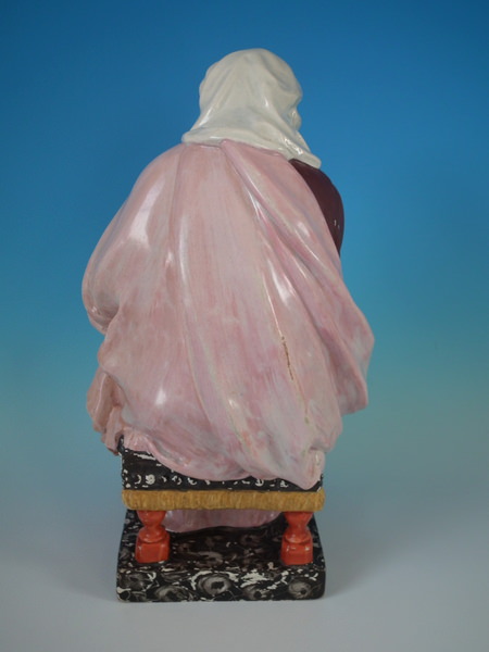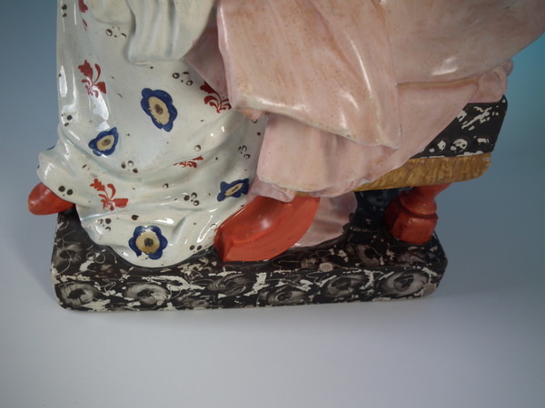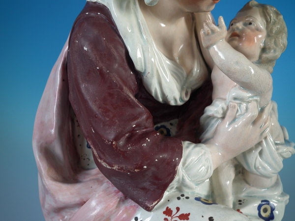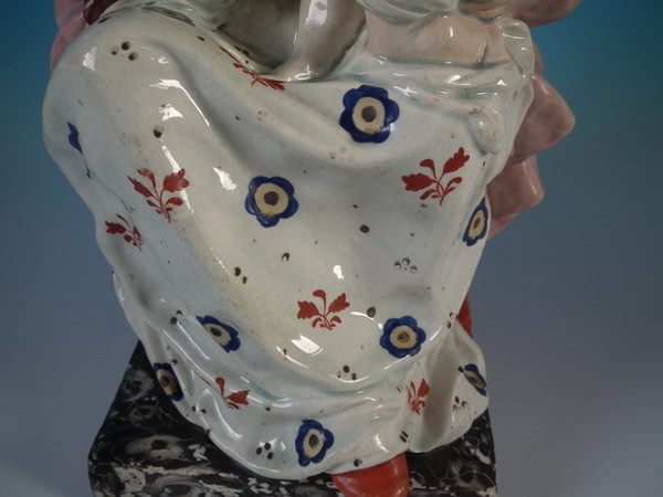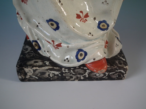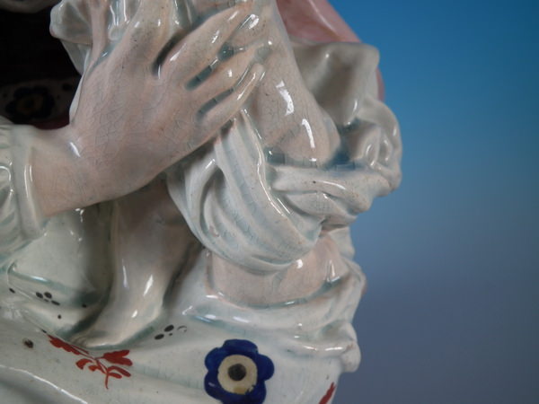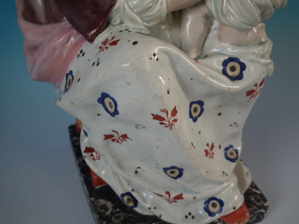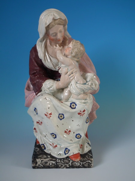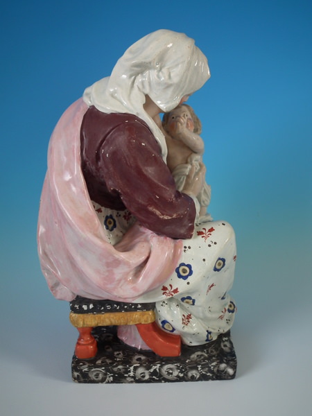 pre-Victorian, circa 1800. 13.2ins high, 7.1ins wide, 7.1ins depth. Staffordshire pearlware figure with a religious theme which features the Madonna and Child,