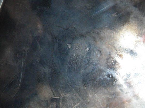 Impressed 'WMF 'ostrich mark, 'B' - Britannia metal, 'I/O' -normal thickness of plating/gilding and 'OX'- Oxidised to the underside.