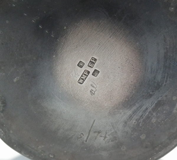 Maker's marks including impressed 'WMF', 'EP' (Electro-plated) and 'as' (Antique silver finish) and 'I/O'.