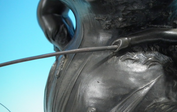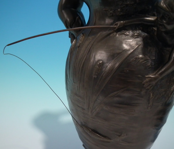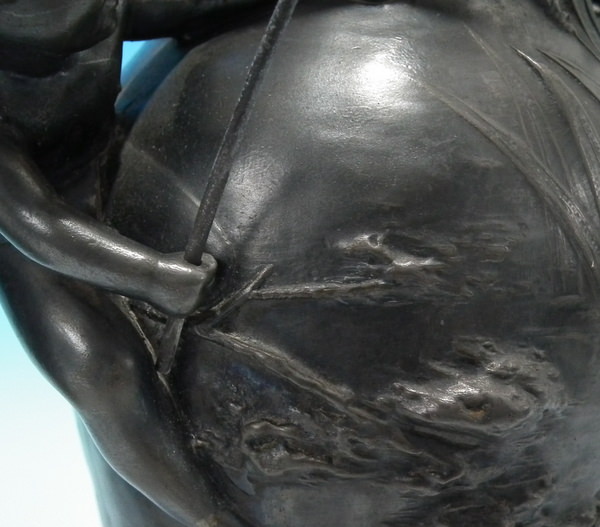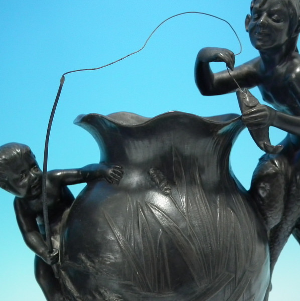 Generally good. Any plating that might have been present, has rubbed off. Remodelled fishing rods and lines on both vases.