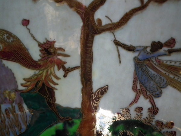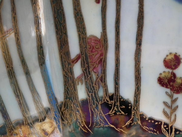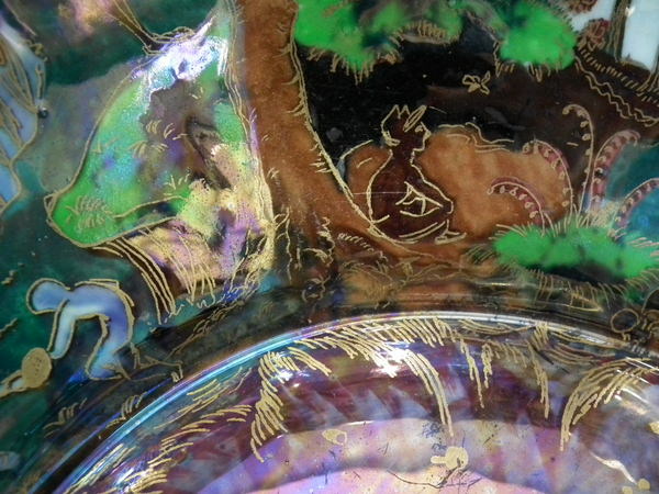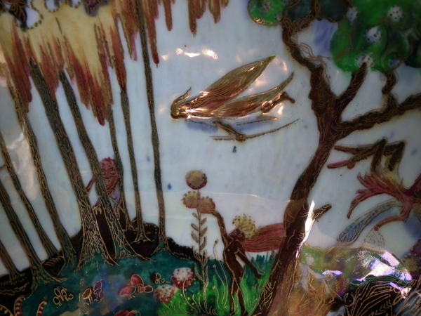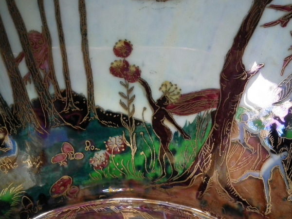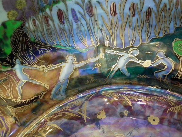 The 'Boxing match' design on a mother of pearl ground to the interior.
