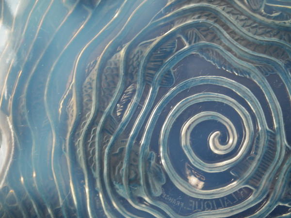 René Lalique Opalescent Glass blue stained 'Dauphins' Coupe plate
