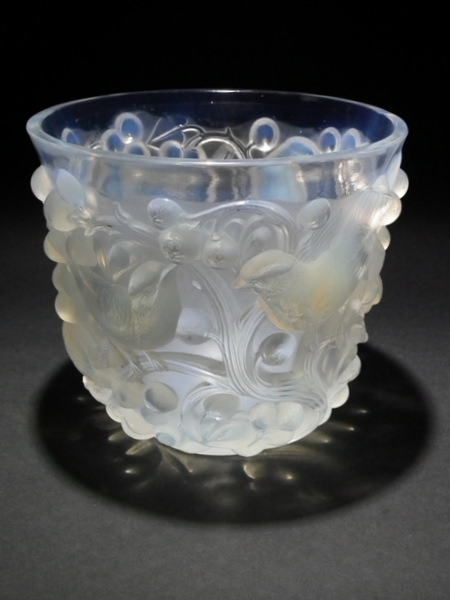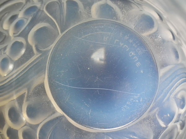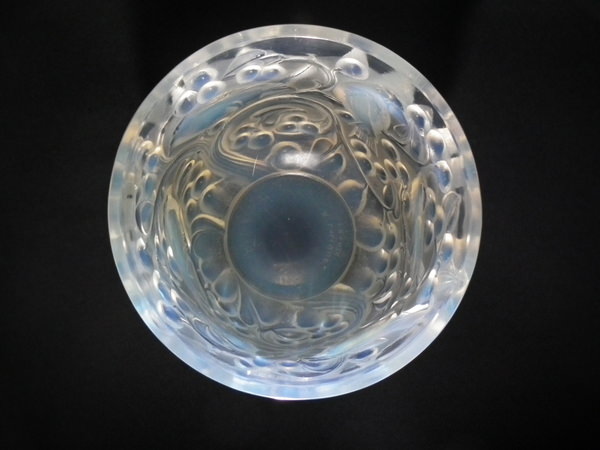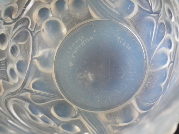 Introduced in 1927. Height: 14.7cm (5.79ins). Width: 16cm (6.3ins). Depth: 16cm (6.3ins). René Lalique Opalescent Glass 'Avallon' vase.