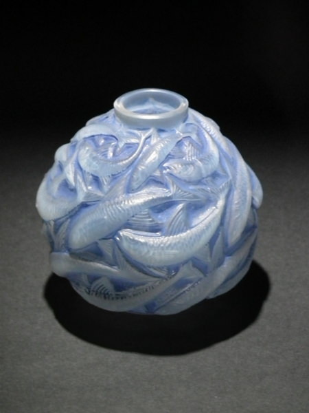 René Lalique Opalescent with blue staining Glass 'Oleron' vase