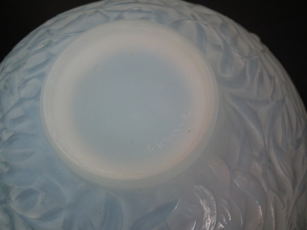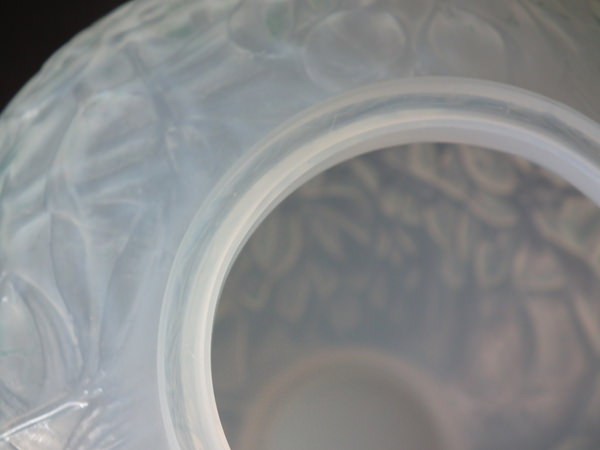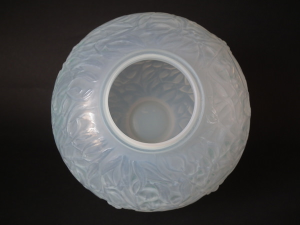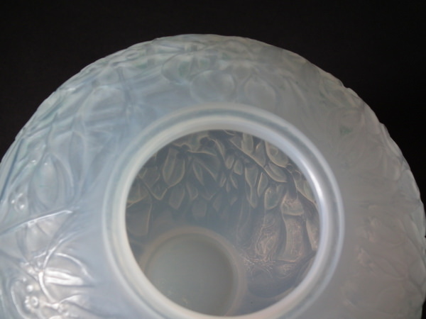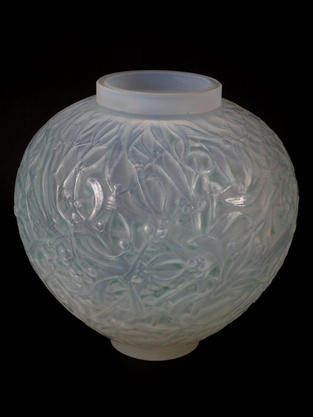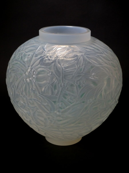 Introduced in 1920. Height: 17cm (6.69ins). Width: 18cm (7.09ins). Depth: 18cm (7.09ins).. Rene Lalique Cased opalescent with green staining Glass 'Gui' Vase.