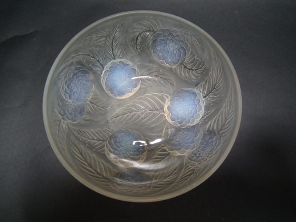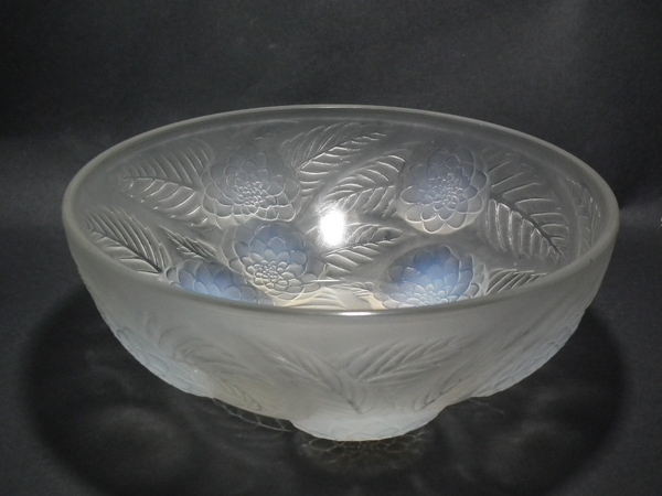 Introduced in 1921. Height: 9cm (3.66ins). Width: 23.8cm (9.37ins). Depth: 23.8cm (9.37ins). René Lalique Opalescent Glass 'Dahlias' Bowl.