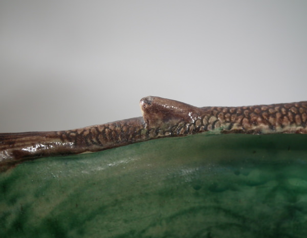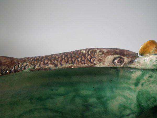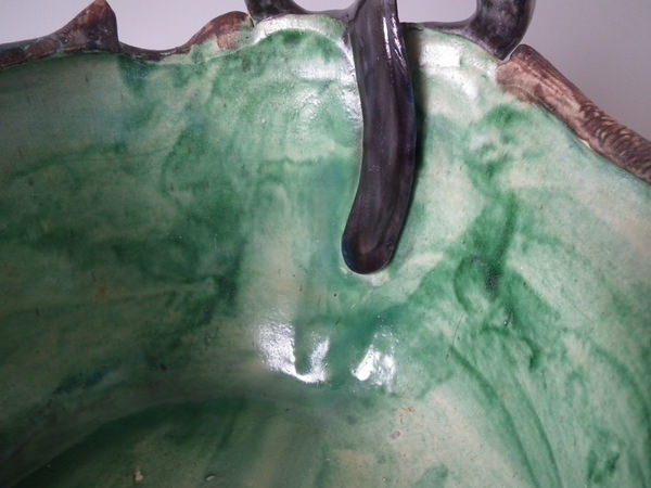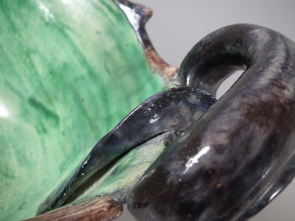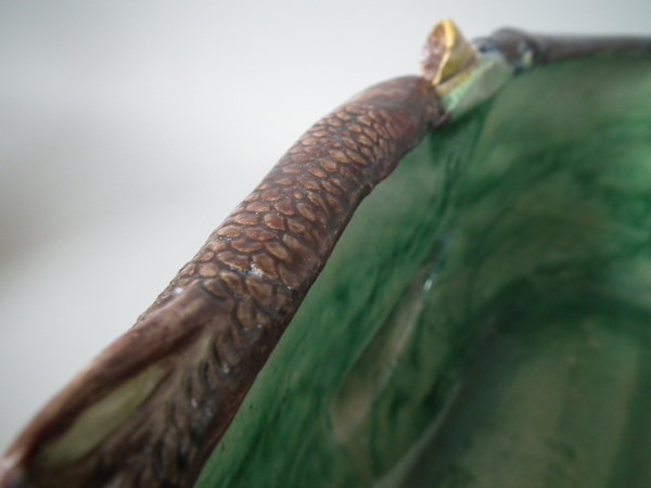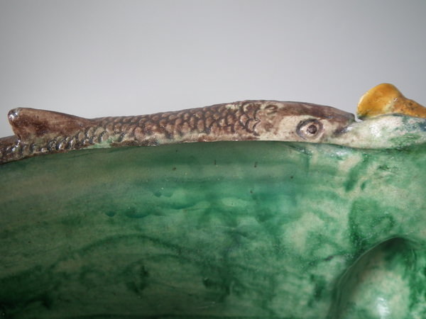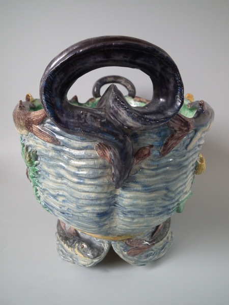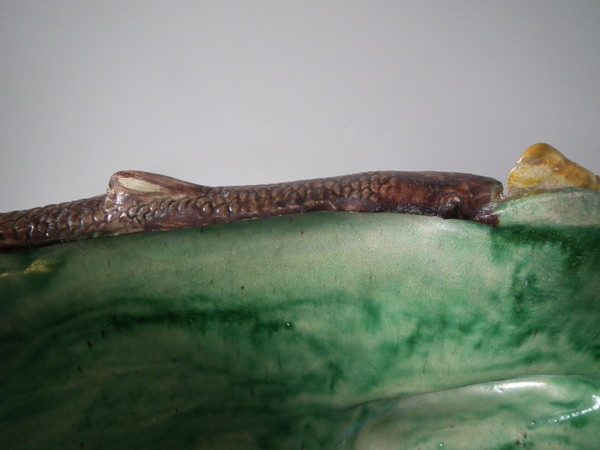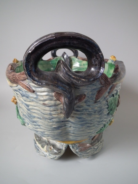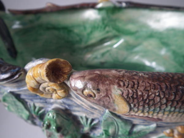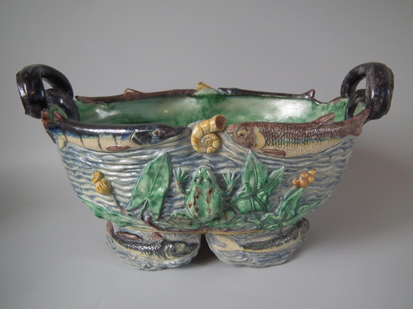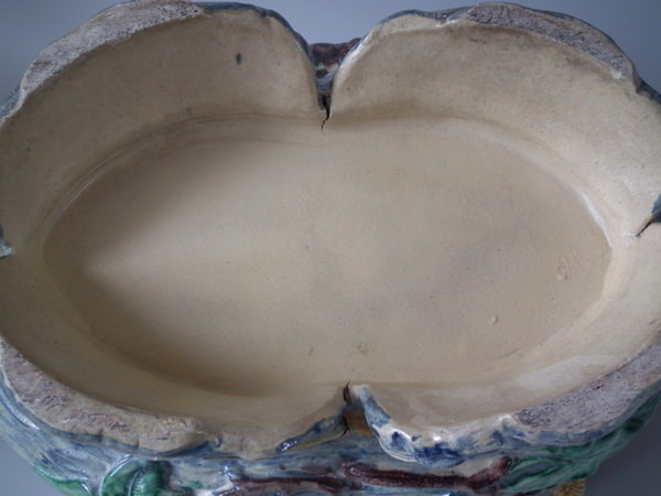 Victorian, circa 1890. 9.6ins high, 17.1ins wide, 10.6ins depth. Unidentified French Palissy Majolica planter