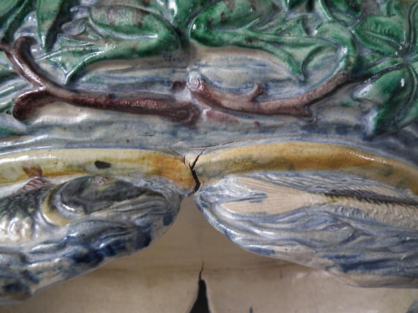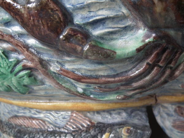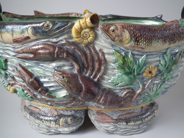 French Palissy Majolica lobster, fish and eel planter