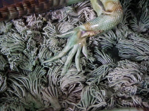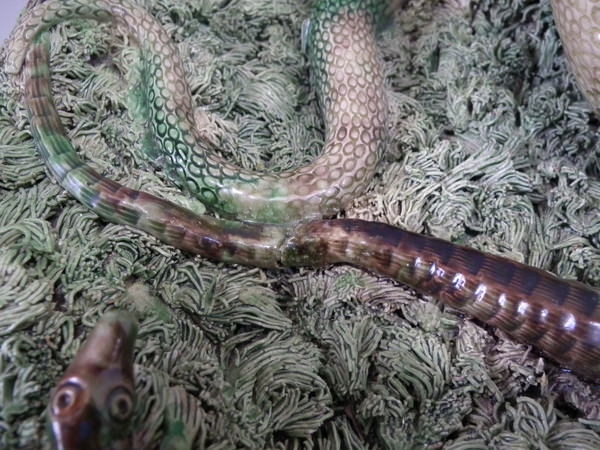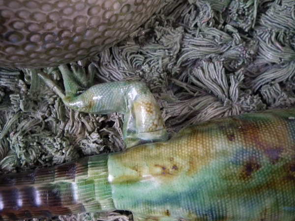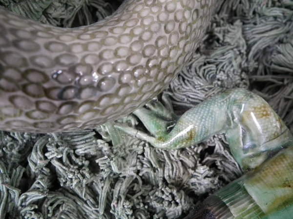 KILN EFFECTS: shrinkage cracks to the larger lizard's tail,