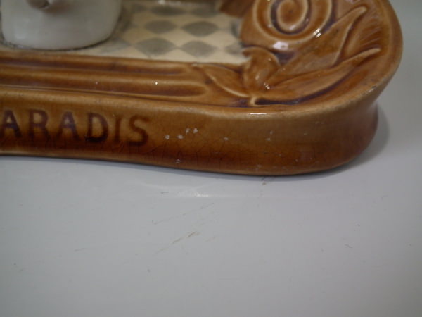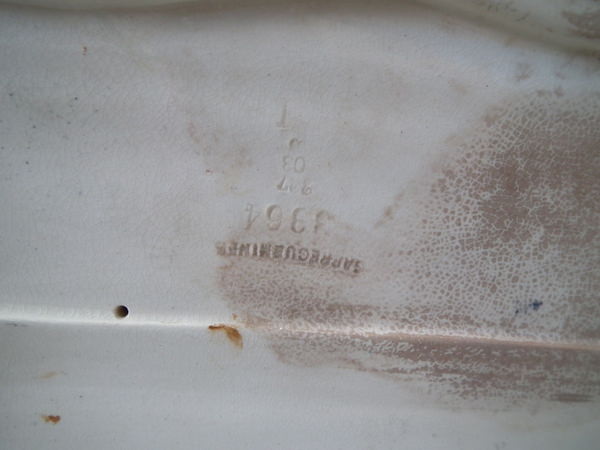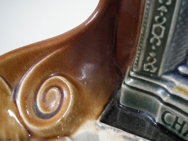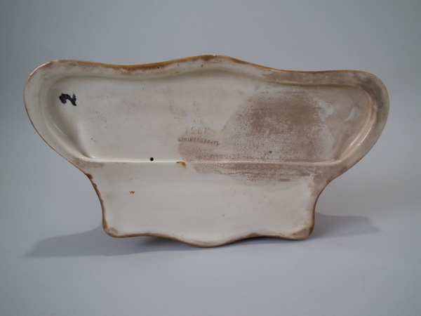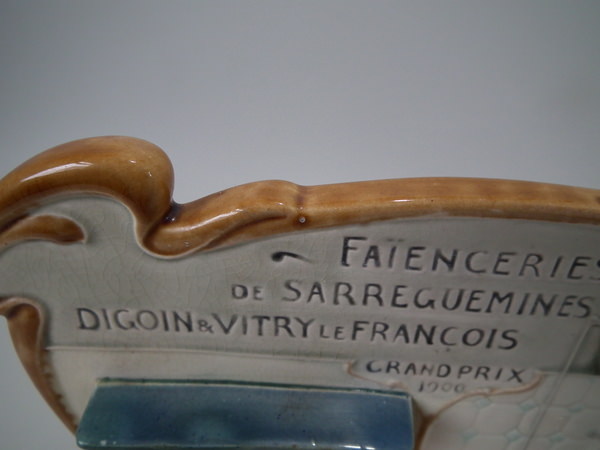 The piece bears maker's marks for the Sarreguemines pottery. Bears a pattern number, '3364'.