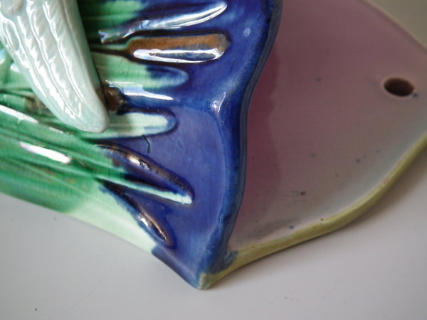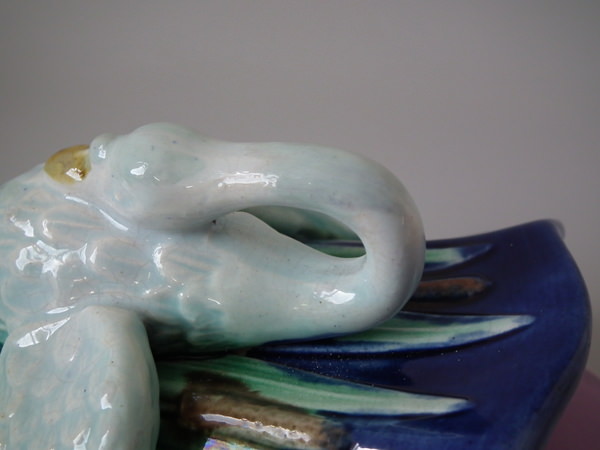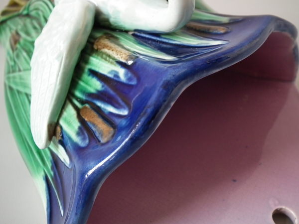 Majolica swan wall pocket