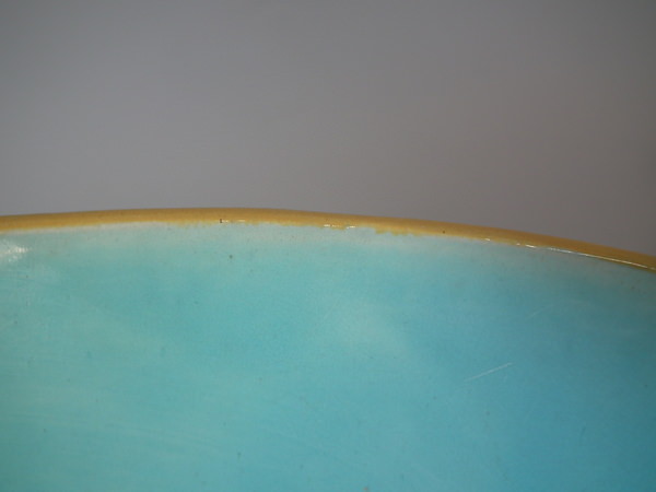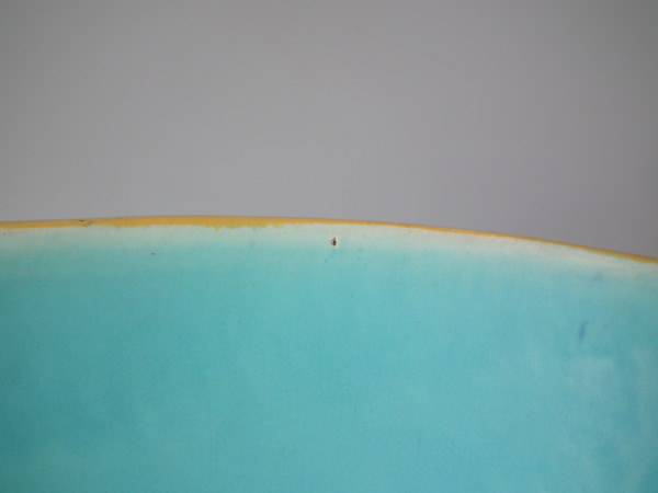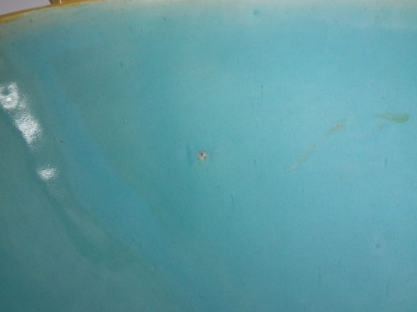 flecks of stray coloured glaze to interior.