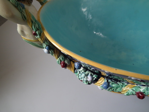 Holdcroft Majolica putti with fruiting garlands centrepiece bowl