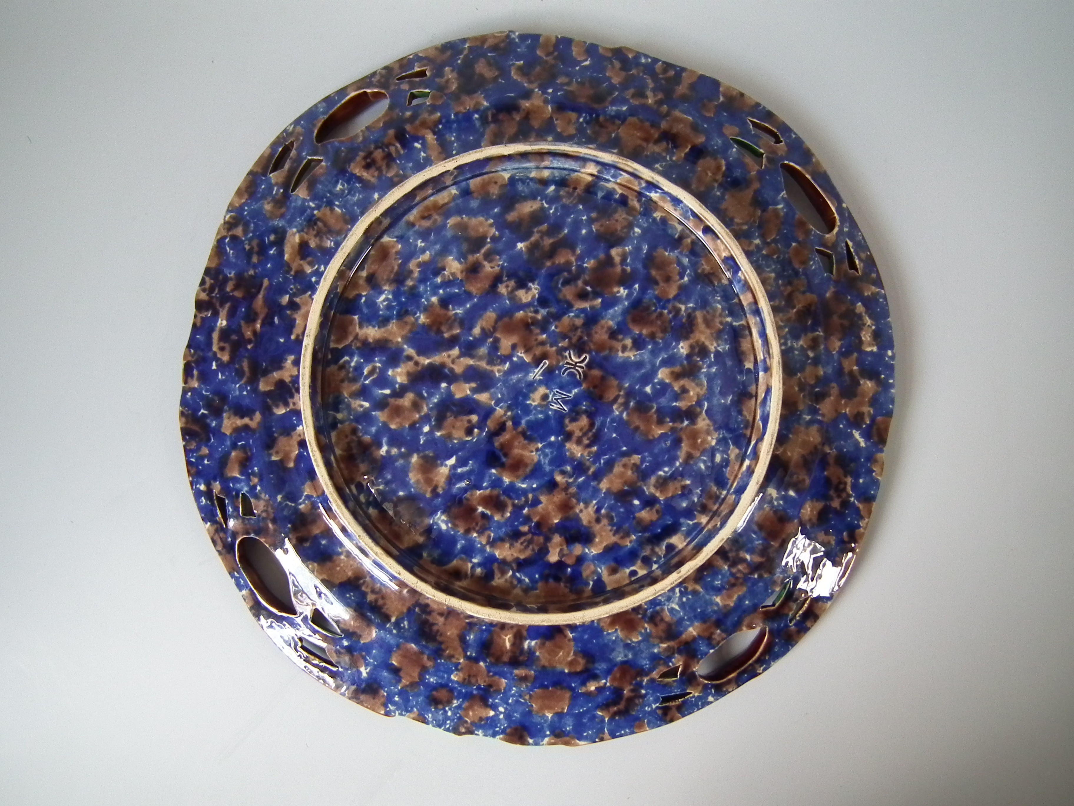 KILN EFFECTS: glaze run to the green glaze.