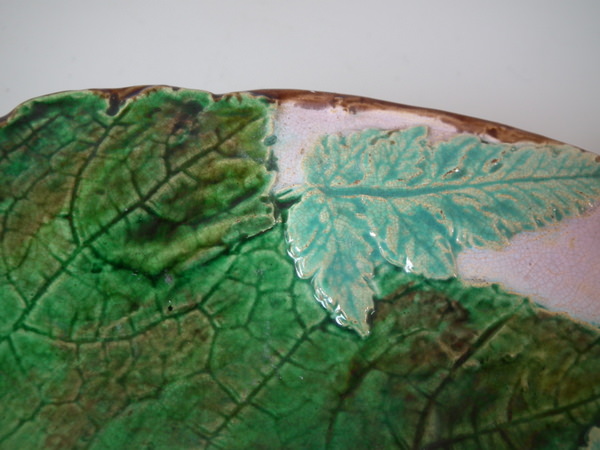 Victorian, circa 1870. 8.3ins high, 8.3ins wide, 1.5ins depth. Holdcroft Majolica plate which features fern leaves and blossom.