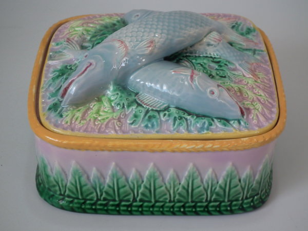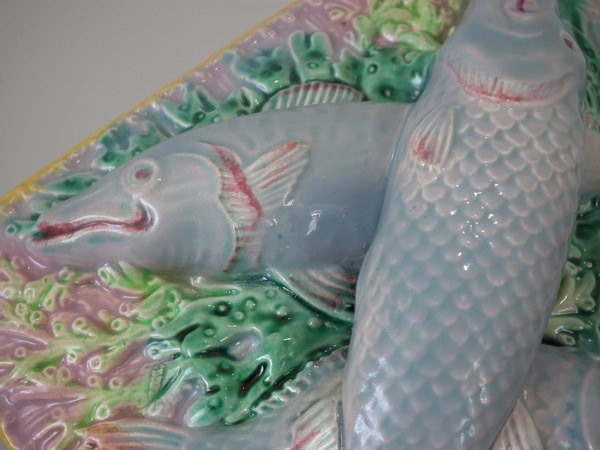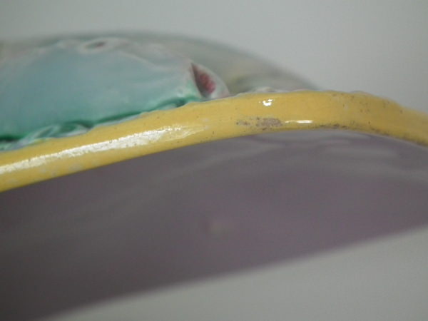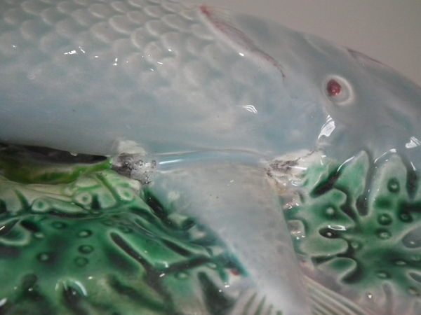 KILN EFFECTS: glaze miss to one fish and ground below;