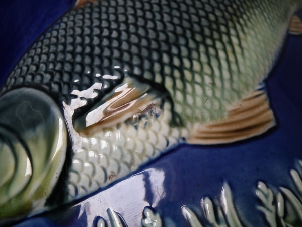 KILN EFFECTS: two small touch marks to fin and eye of one of the larger fish;