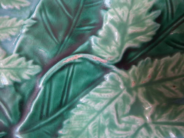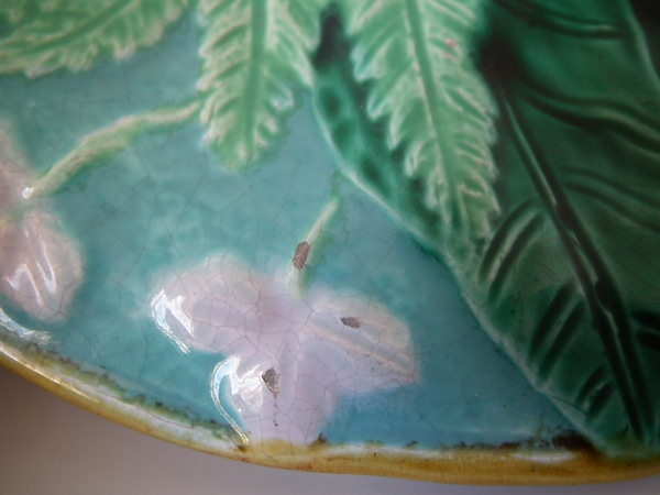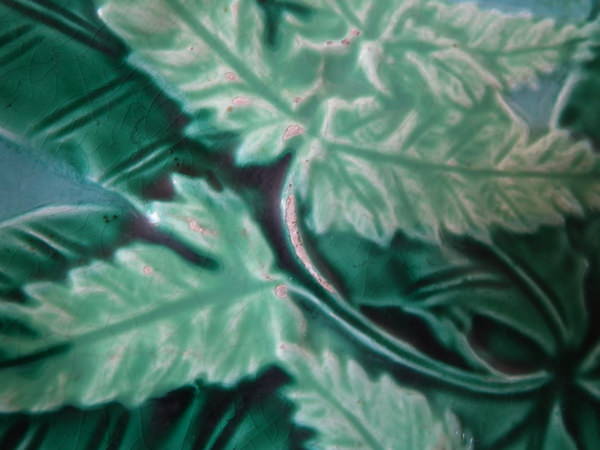 Majolica fern leaf & flowers plate