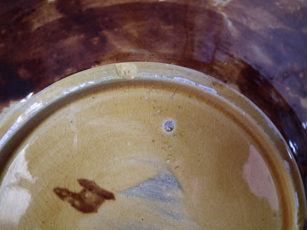 KILN EFFECTS: uneven glaze application to underside.