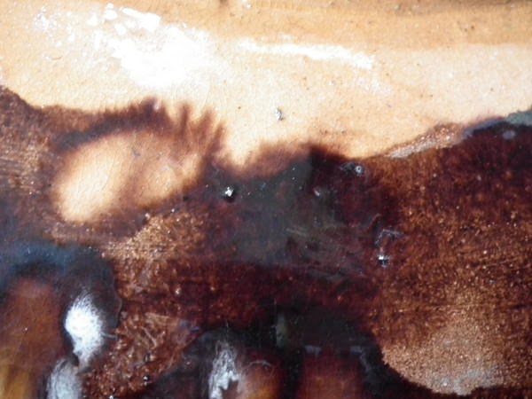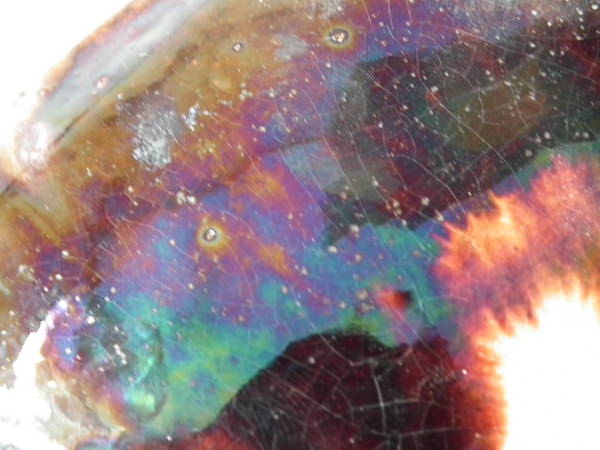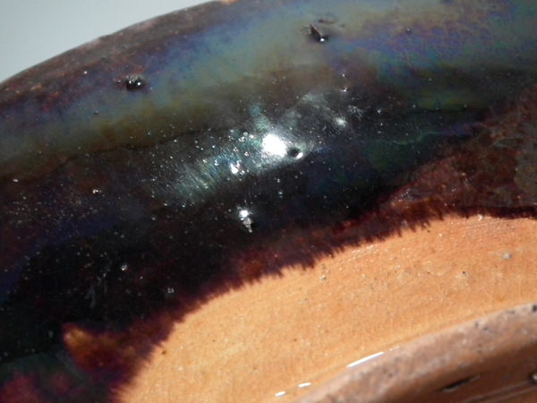KILN EFFECTS: a few specks of kiln detritus caught in the glaze to the front