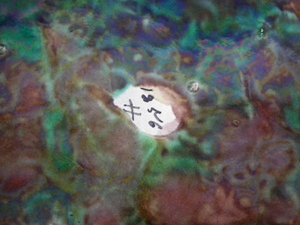 KILN EFFECTS: a speck of kiln detritus caught in the glaze to the centre.