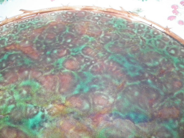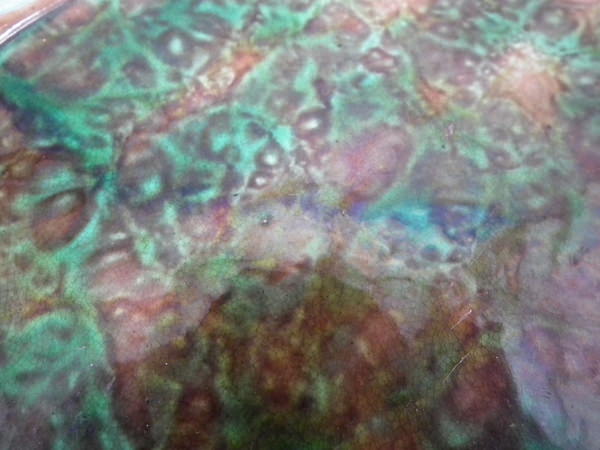 Turquoise ground version. Colouration: green, dark pink, ochre, are predominant.