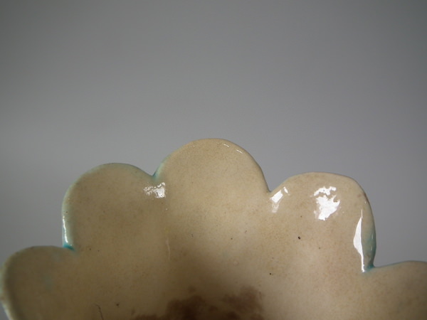 KILN EFFECTS: glaze run to the green glaze.