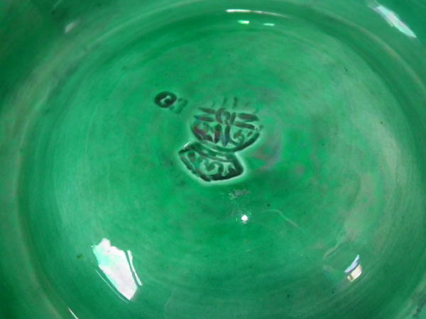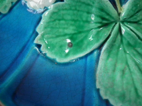 fleck of stray coloured glaze to one leaf.