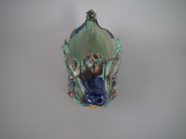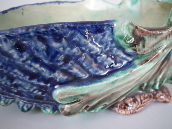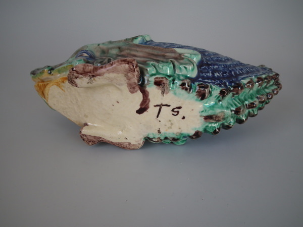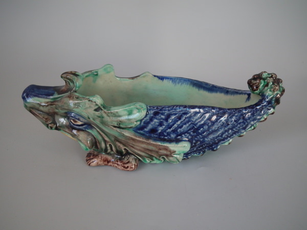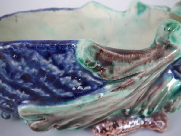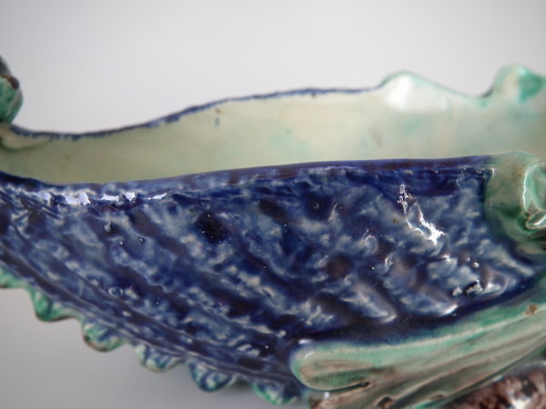 Victorian, circa 1890. 2.8ins high, 7.7ins wide, 2.8ins depth. Thomas Sergent French Palissy Majolica bowl which features a hedgehog.