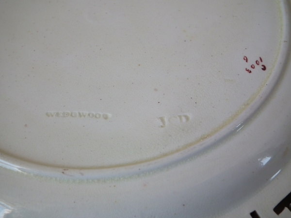 The piece bears maker's marks for the Wedgwood pottery. Bears a pattern number, '1003 6'. Marks include a factory specific date cipher for the year 1875.
