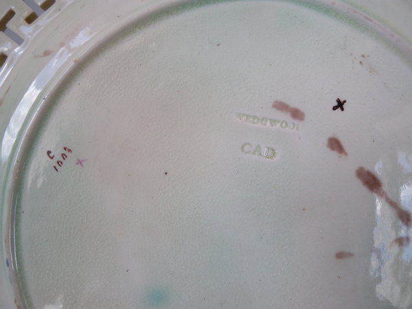 The piece bears maker's marks for the Wedgwood pottery. Marks include a factory specific date cipher for the year 1875.