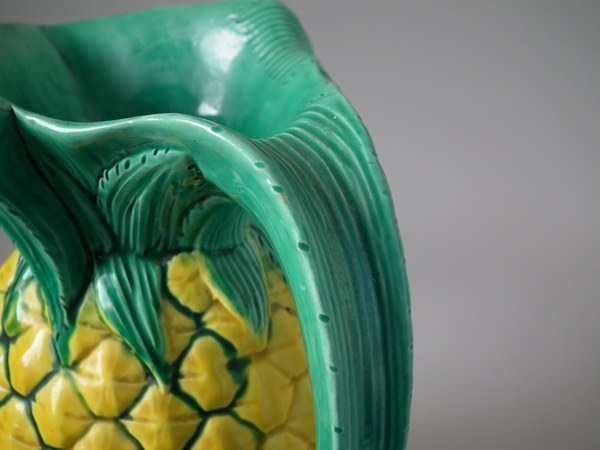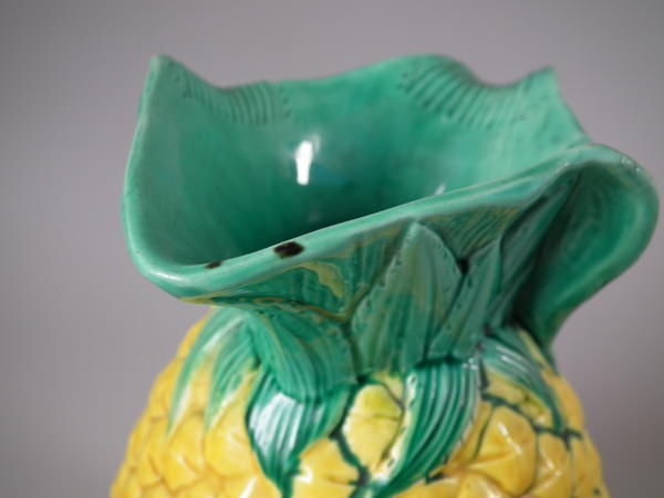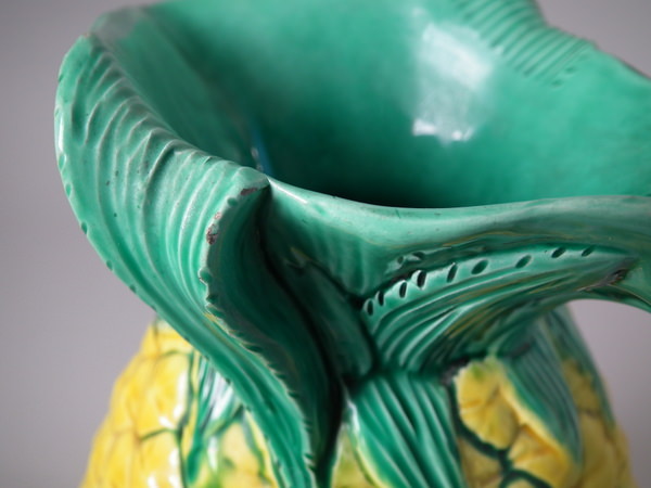 Victorian, circa 1872. 7.9ins high, 5.9ins wide, 4.7ins depth. Minton Majolica jug/pitcher which features a pineapple.