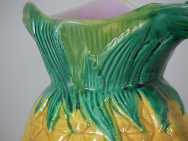 Unidentified English Majolica jug/pitcher which features a pineapple.