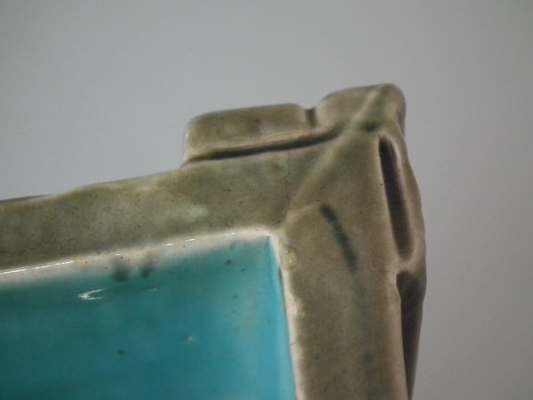 shrinkage lines to two corners and one to rim.