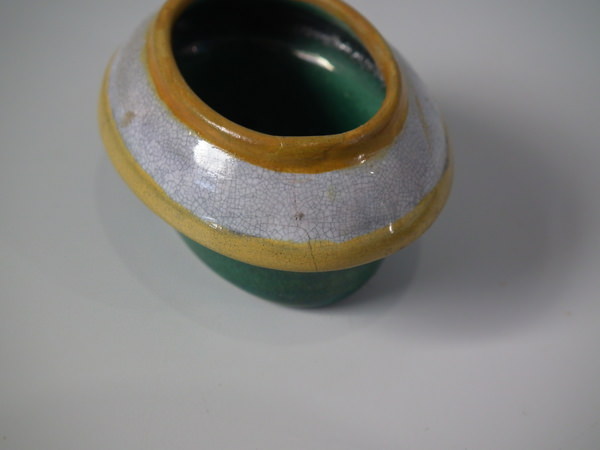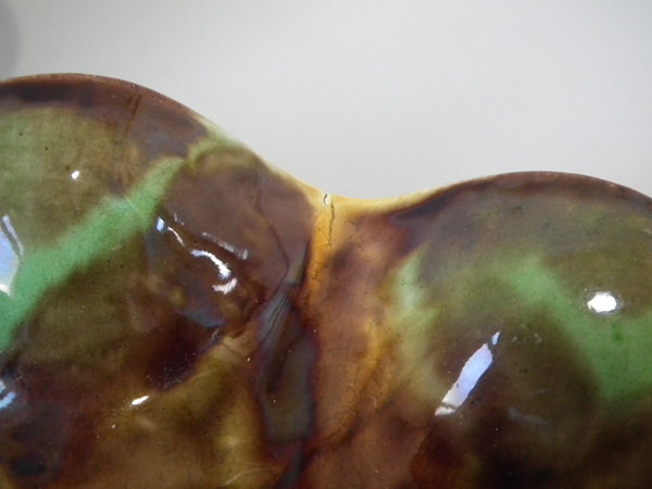 KILN EFFECTS: over glazed shrinkage line to the rim of leaf;