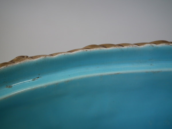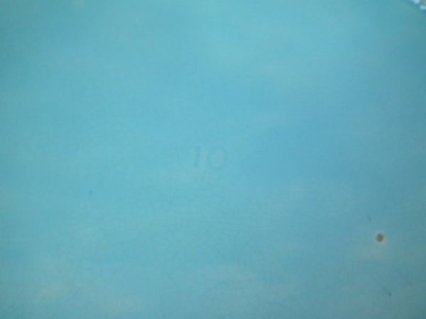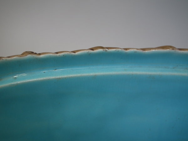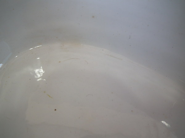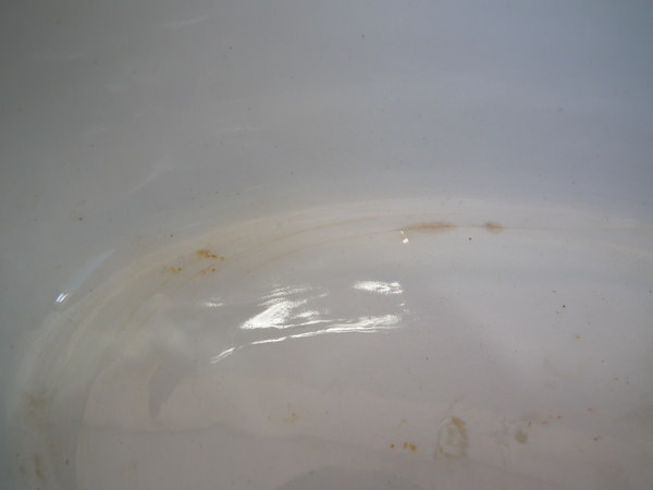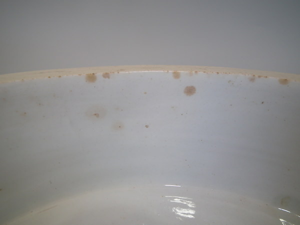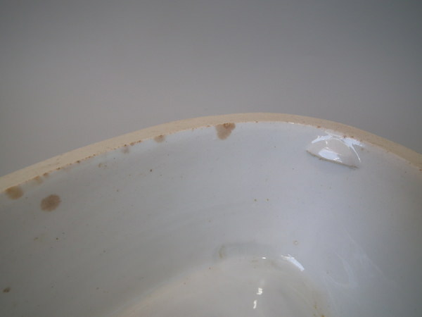 Liner: Good. No restoration. KILN EFFECTS: a few stains on rim and interior;