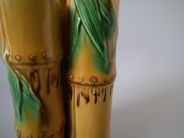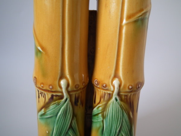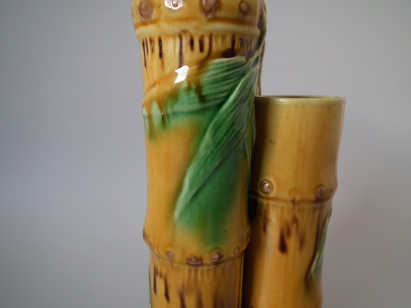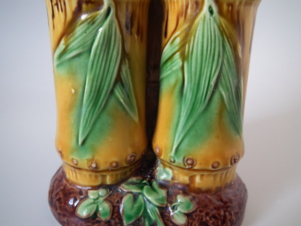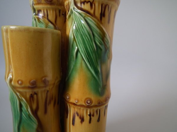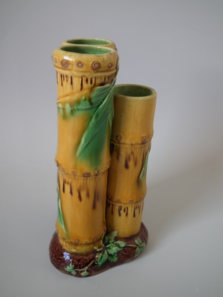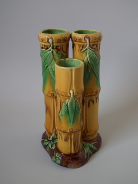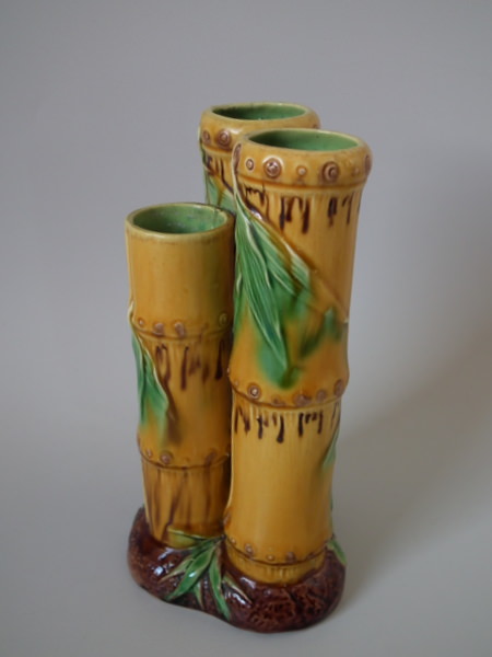 Minton Majolica bamboo triple spill vase