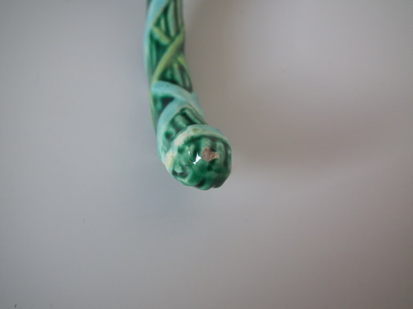 KILN EFFECTS: a few glaze misses to the turquoise ribbon.
