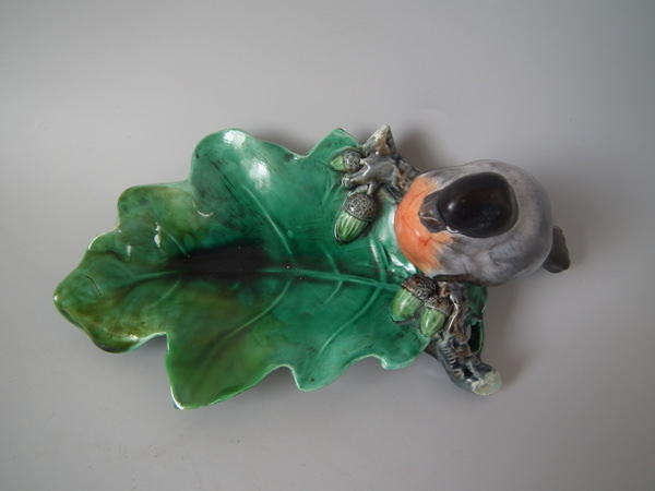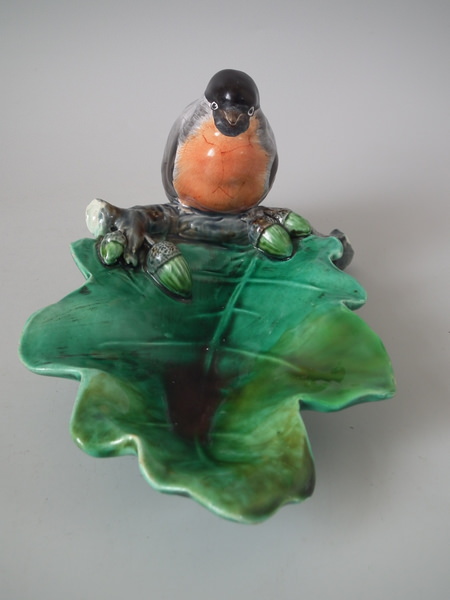 Minton Majolica bullfinch nut dish (Wilbraham tray)
