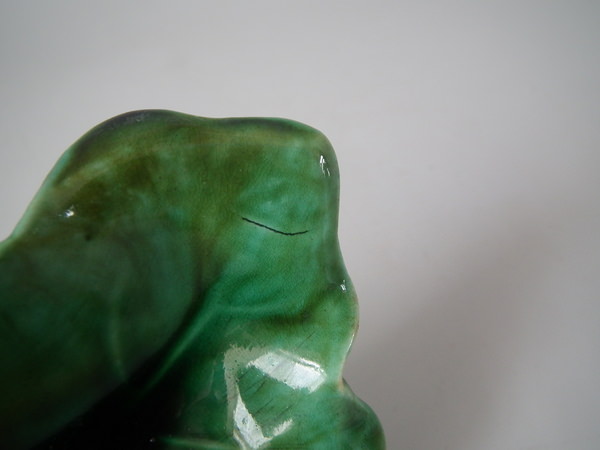 RESTORATION: Section of leaf rim reglued and join retouched.