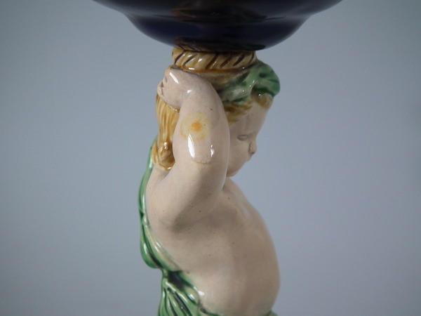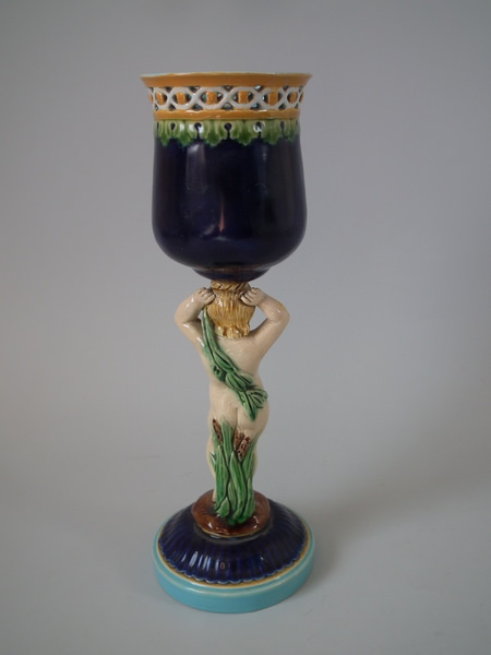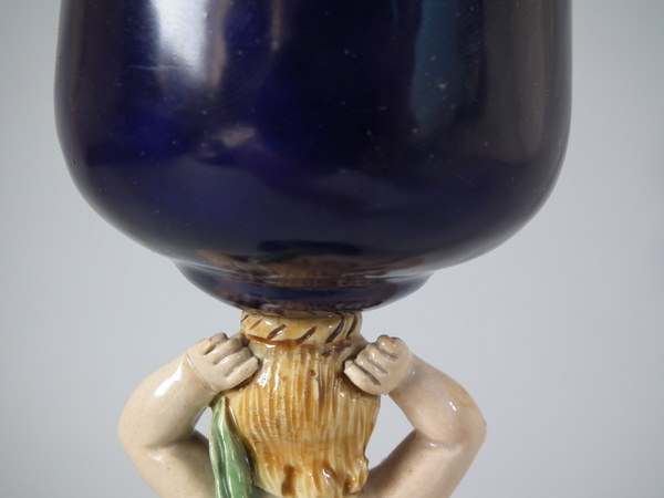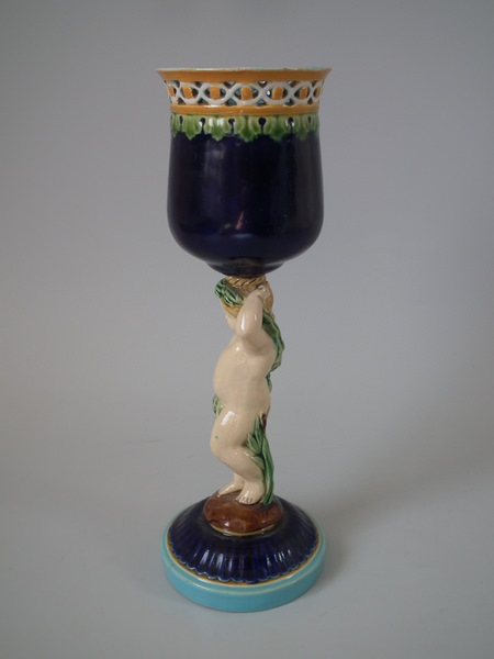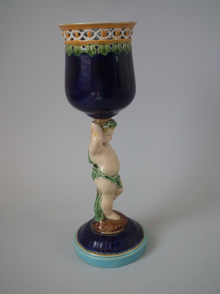Minton Majolica Goblet with putti stem