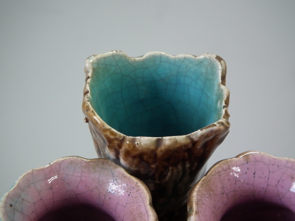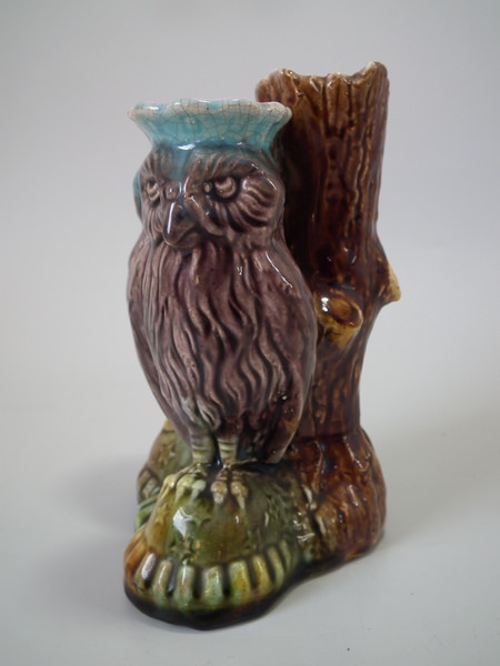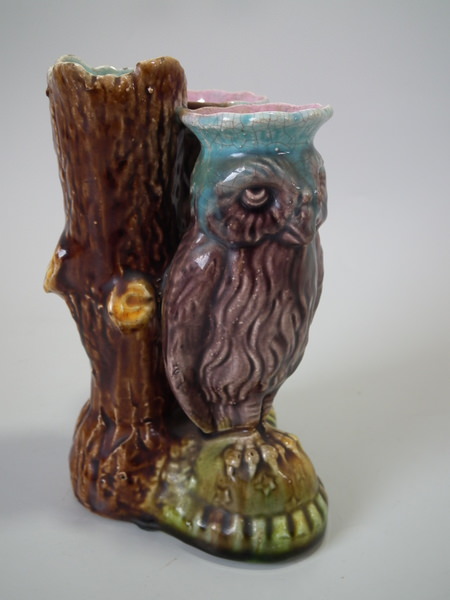 Majolica owl posy holder