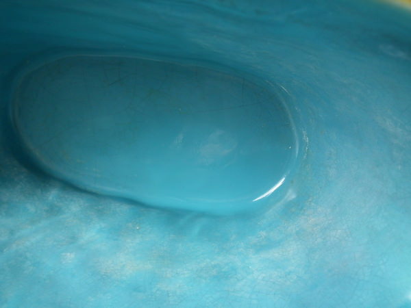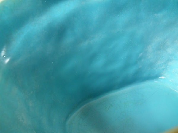 KILN EFFECTS: piece of kiln detritus caught in the glaze to the interior.